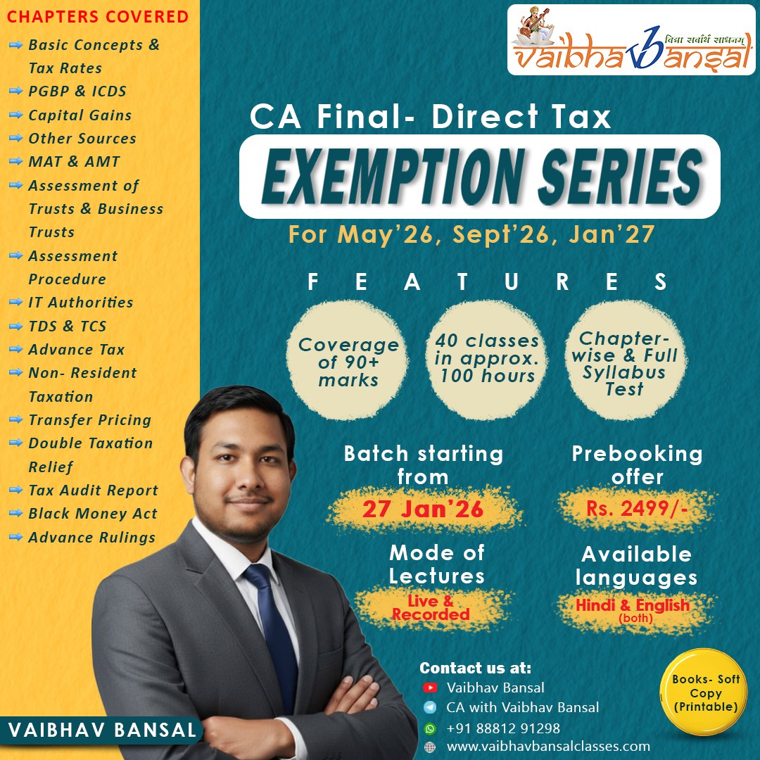 CA FINAL – DT Exemption Batch May 26 , Sep 26 and Jan 27